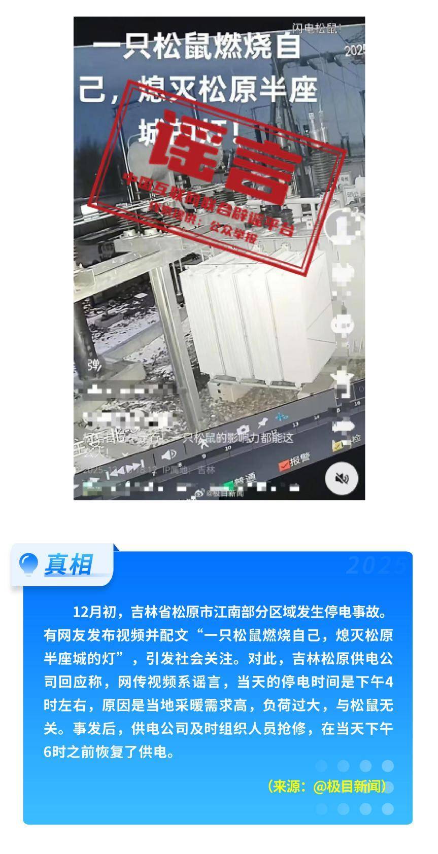 一只松鼠导致吉林松原“半城”停电