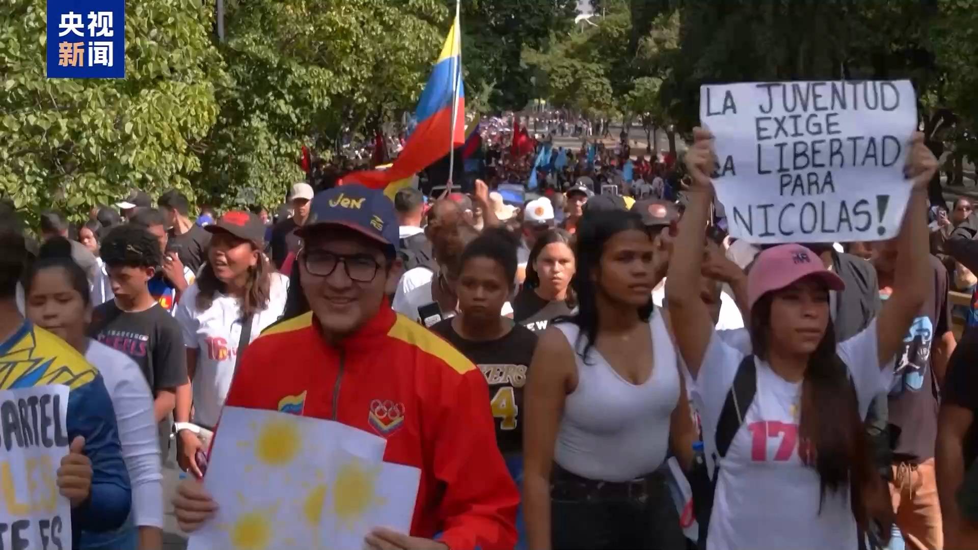 总台记者 雷湘平:与此同时,加拉加斯等地的群众游行活动仍在持续。8日当天,数千名青年走上街头,手持委内瑞拉国旗、马杜罗总统夫妇画像和标语牌,高呼口号,强烈谴责美军空袭,并要求美方立即释放马杜罗总统夫妇。