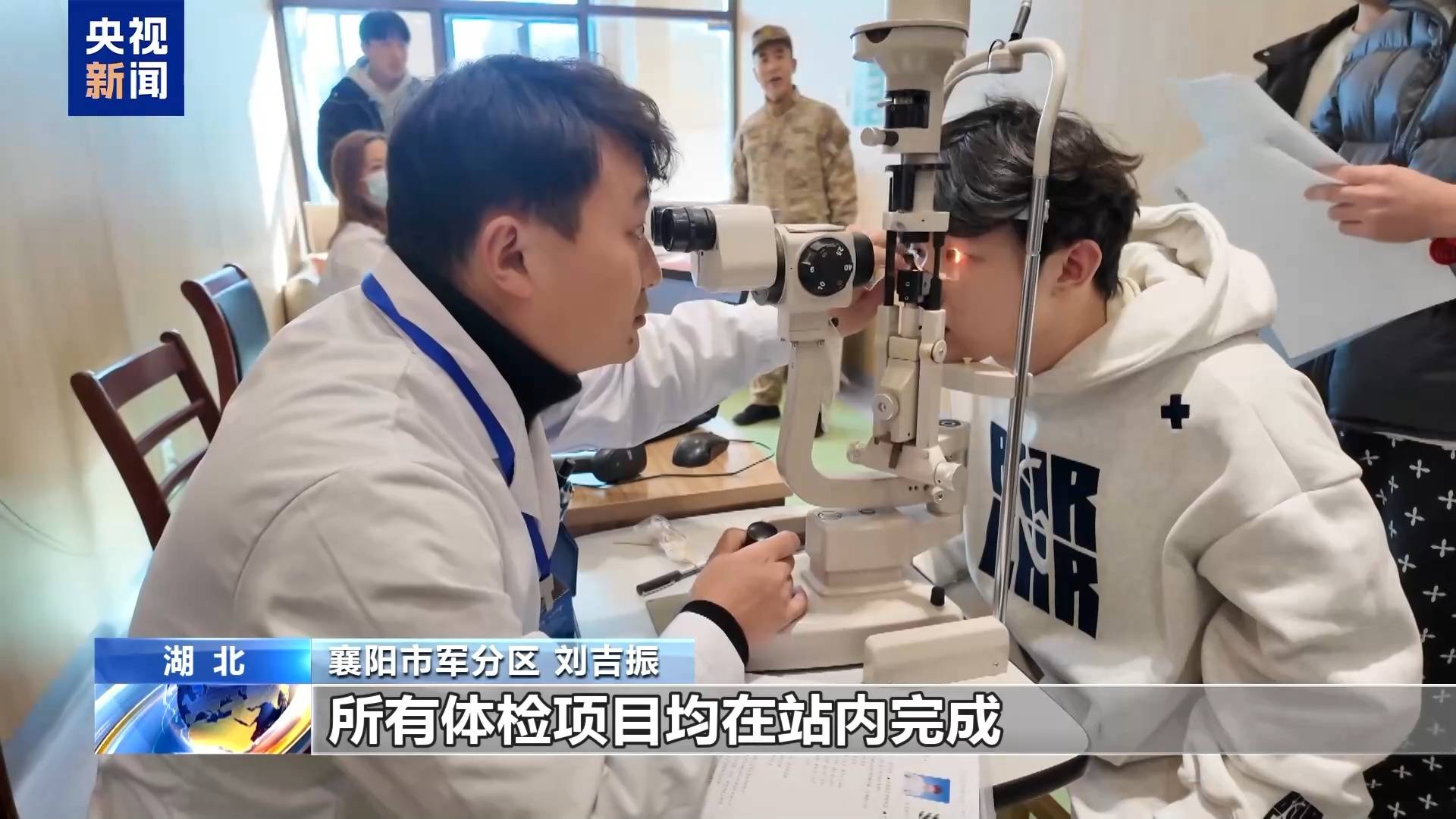 襄阳市军分区 刘吉振:各地集中组织应征青年进站体检,征兵体检站实施封闭式管理,所有体检项目均在站内完成。每名青年体检结束后,当场告知单科体检结论,确保征兵体检公开透明。