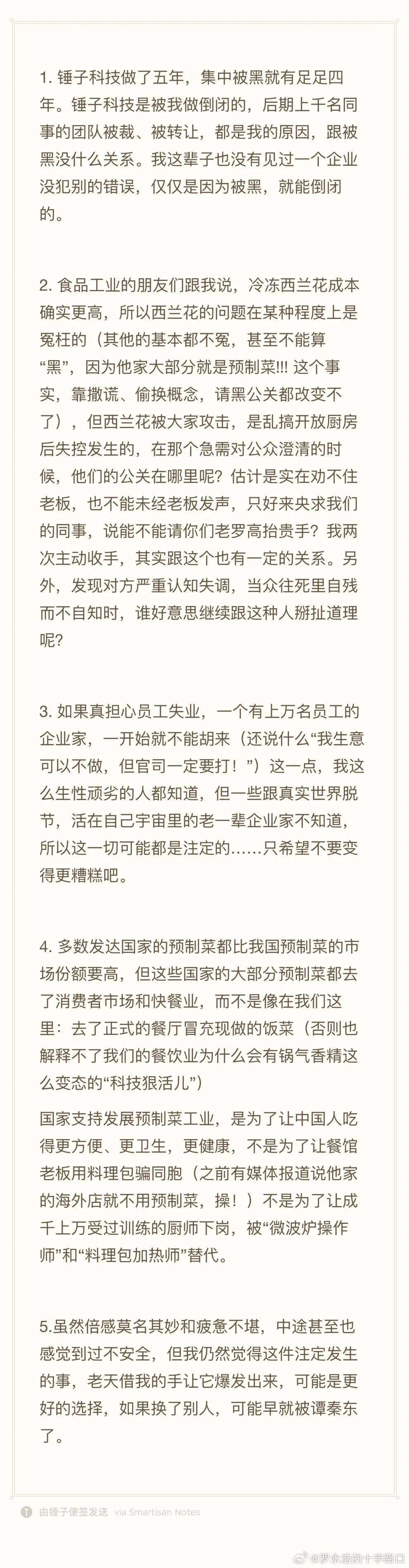 罗永浩最新回应“西贝预制菜风波”:没见过一个企业仅仅是因为被黑就能倒闭的