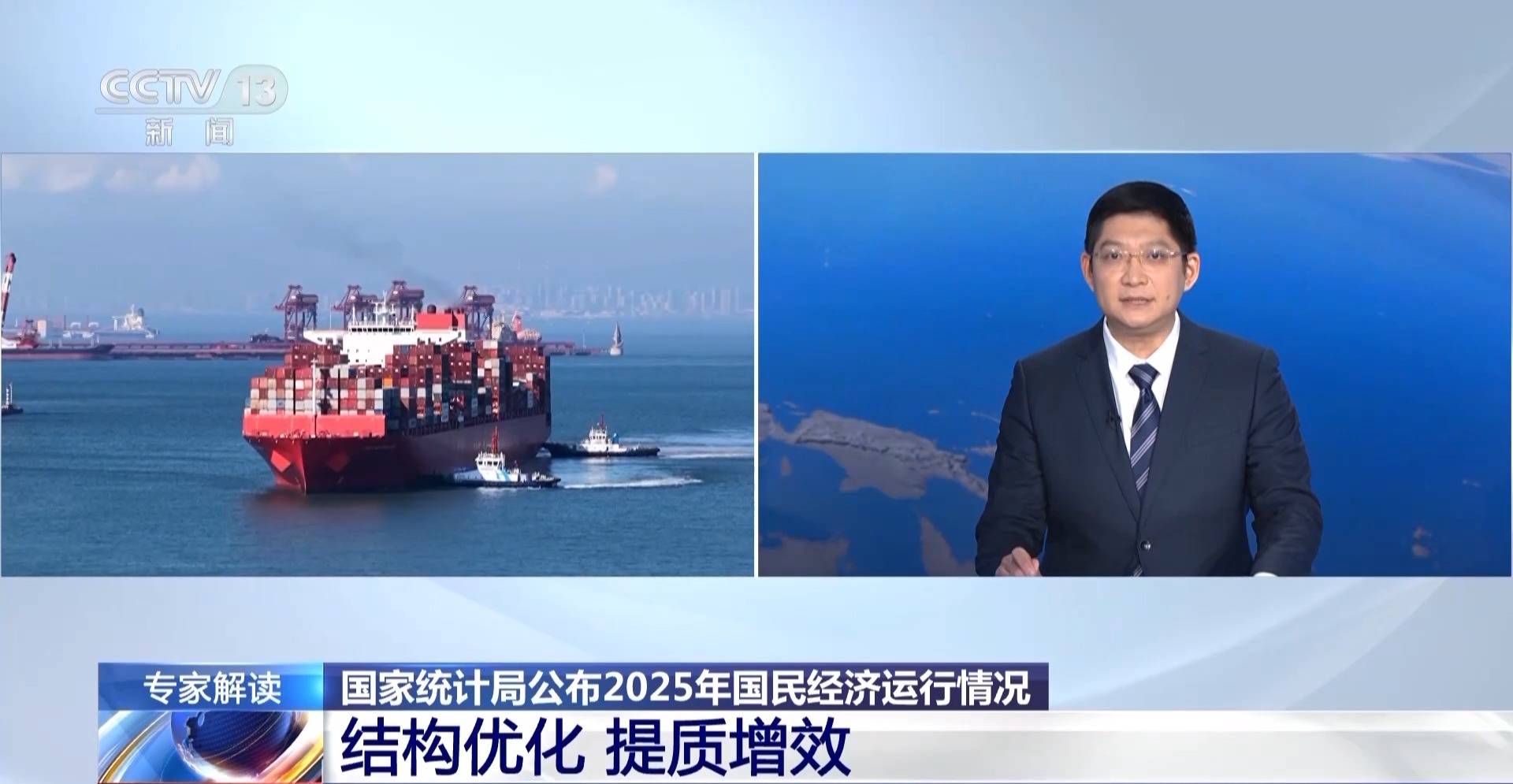 国家发展改革委国家信息中心研究员 魏奇佳:我们看2025年整个经济运行数据反映出来的亮点,首先就是稳中有进、向新向好。这份成绩单的取得,比如说经济总量突破140万亿元大关,保持了5%的经济增长速度,充分彰显了我们超大规模经济体在发展过程当中的韧性和潜力。即便遇到风高浪急的挑战,但是外贸出口、国内产业转型升级调整的步伐都在坚定地向前迈进。