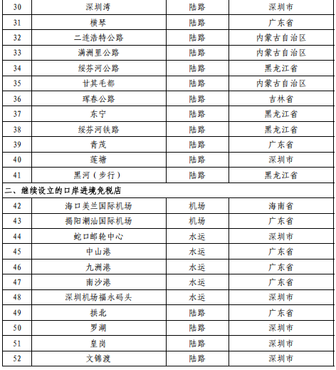 一、在武汉天河国际机场等41个口岸各新设1家口岸进境免税店。其中,横琴口岸进境免税店设立后,允许自澳门进境居民旅客在该口岸进境免税店购买一定数量(15000元以内)的免税商品。