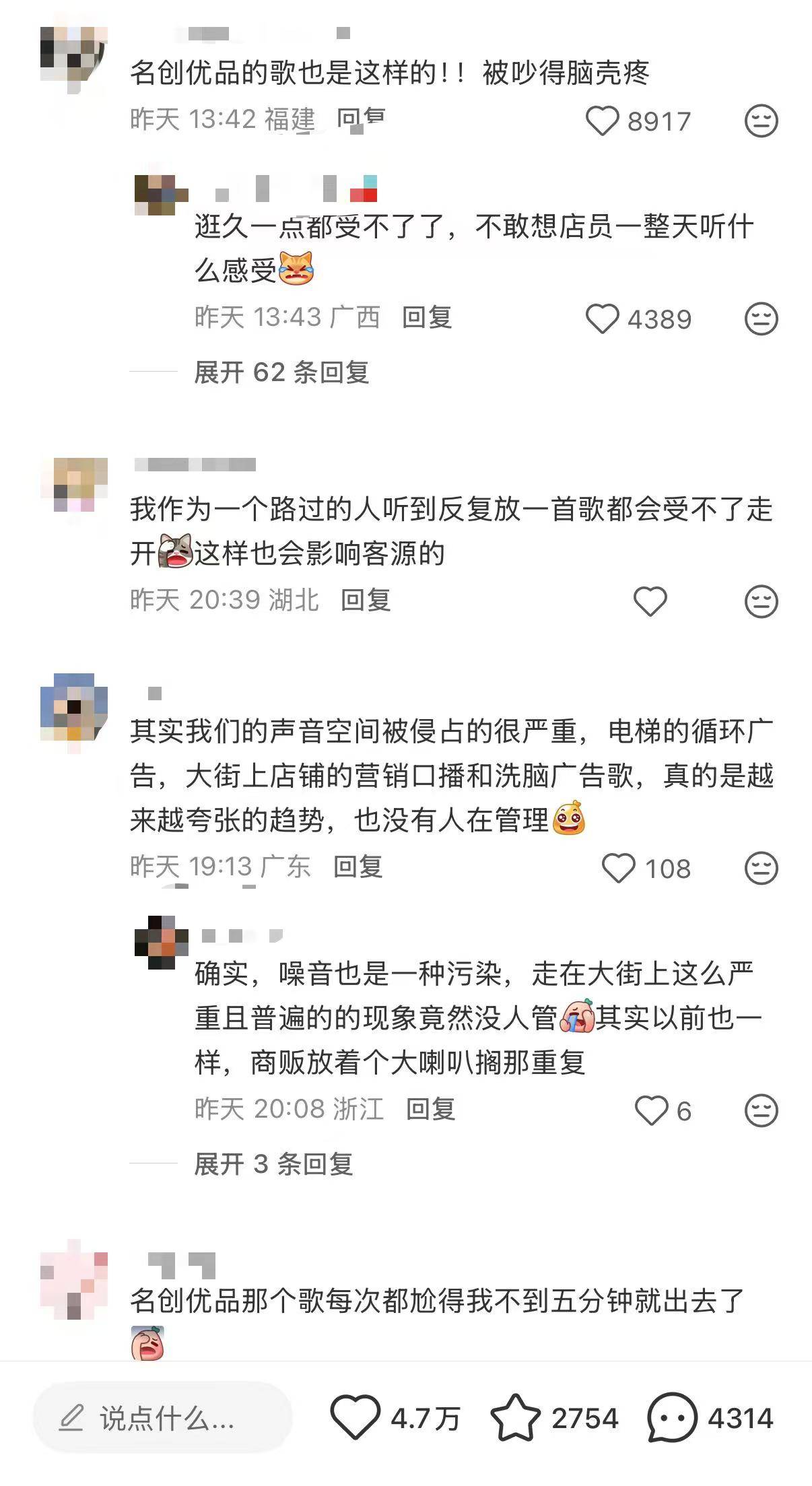 评论区里,网友们看法各异。有网友认为,这类旋律简单、歌词易记的主题歌,能够帮助品牌快速加深消费者印象,属于常见的营销方式,对此表示理解;也有不少网友直言,单曲循环播放广告歌曲很容易让人产生听觉疲劳,旋律会在脑海里反复回荡,让人烦躁;还有部分消费者提到,会因为难以忍受持续播放的广告音乐,选择缩短购物时间、提前离店。
