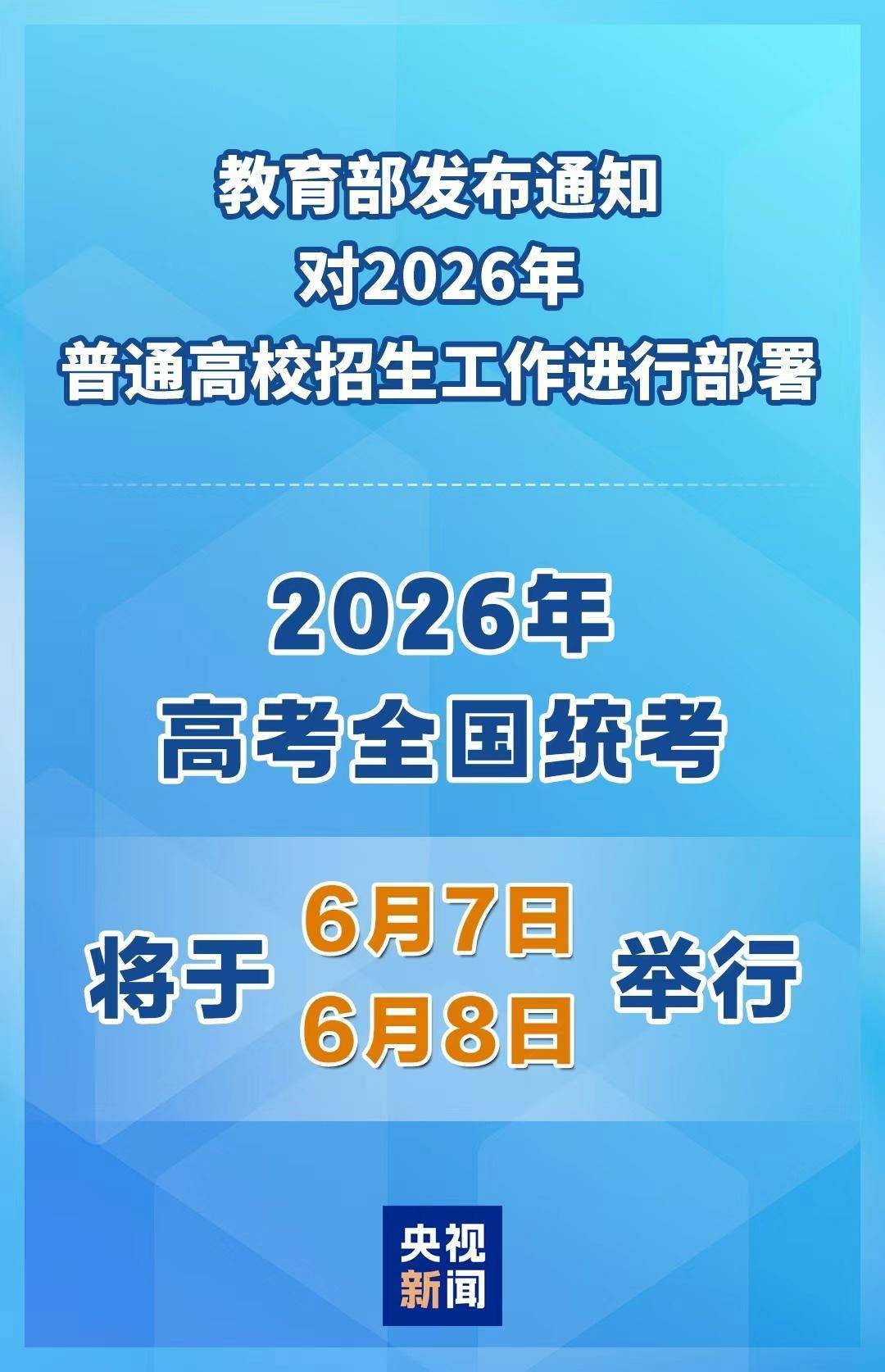 时间定了!今年高考全国统考将于6月7日、8日举行 详情