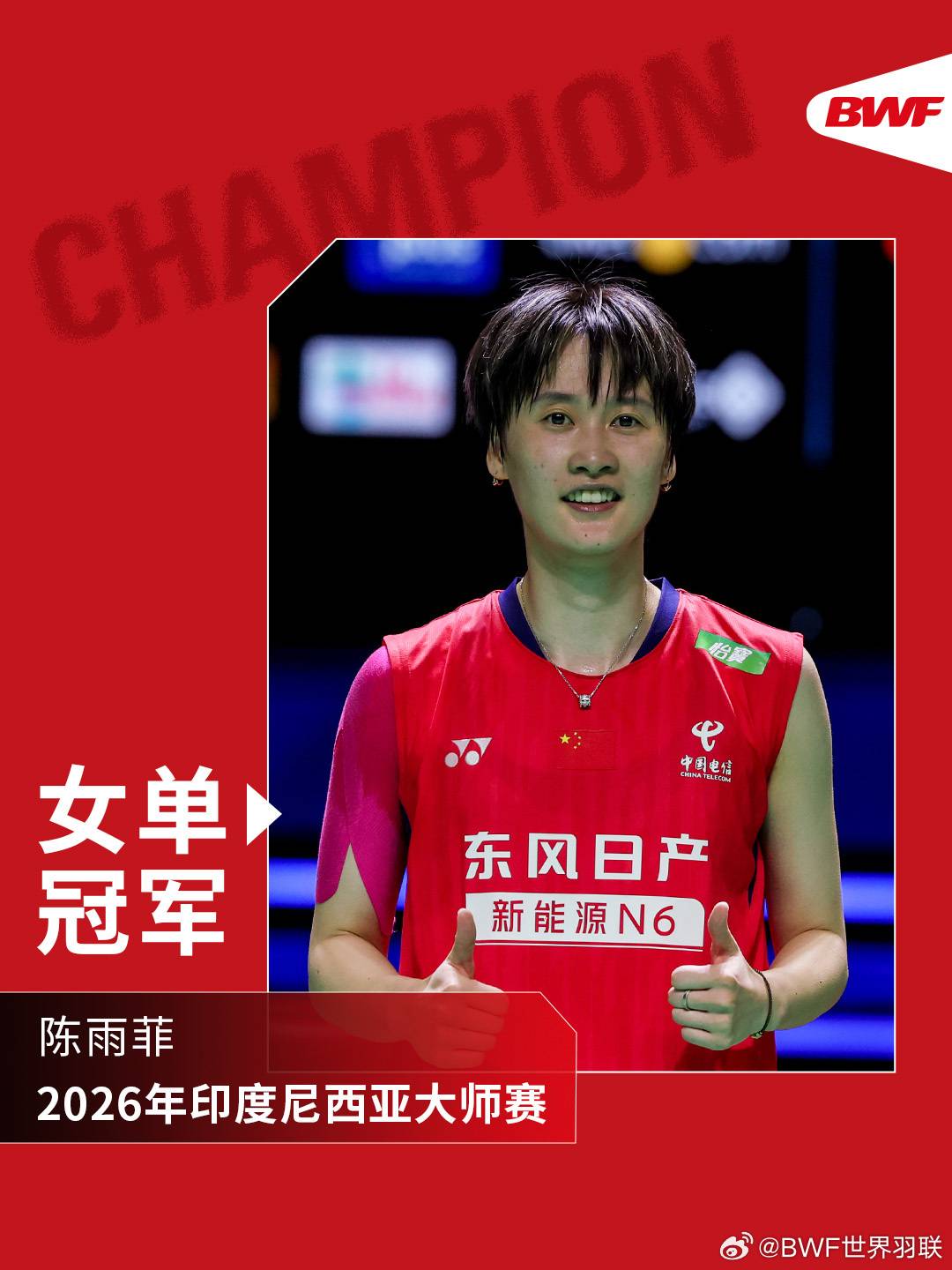 祝贺!陈雨菲获印尼羽毛球大师赛女单冠军