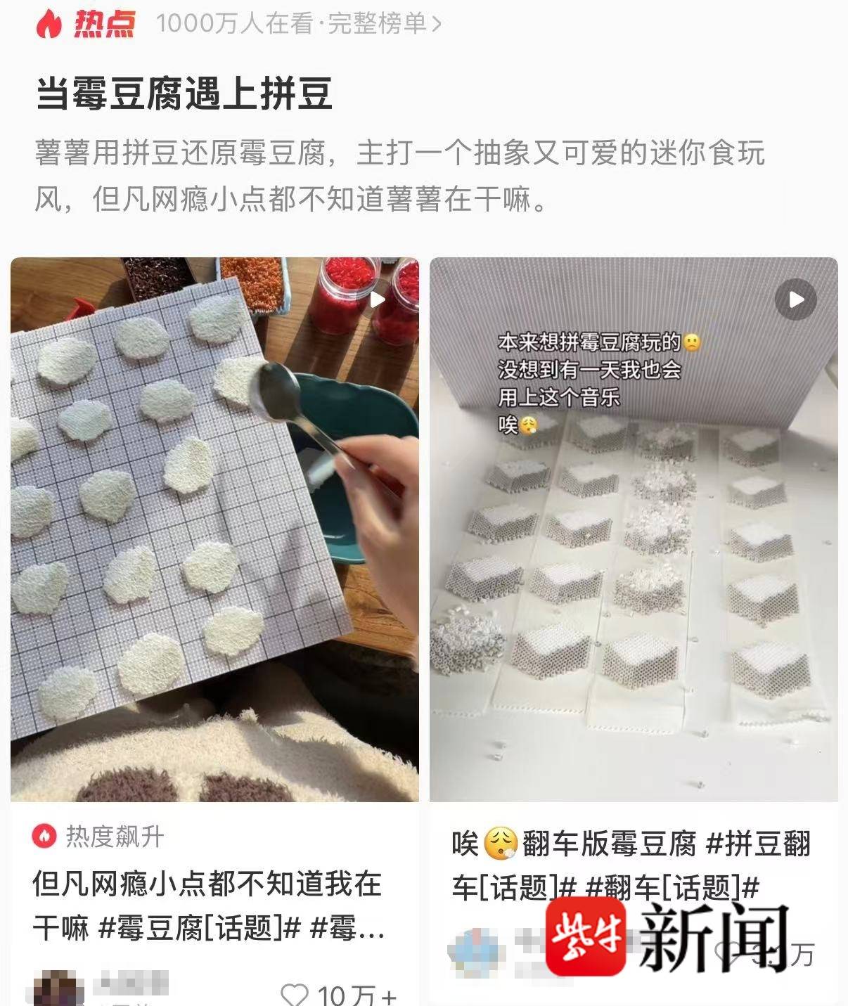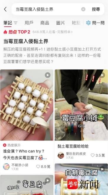 随着话题热度持续攀升,短视频的内容形式也悄然升级,从单纯的商品销售转向沉浸式“体验模式”。不少网友因反复观看短视频,对制作流程烂熟于心,既想一尝风味,更希望亲自参与制作。由于线下部分地区少见专门的霉豆腐摊贩,网友们纷纷动手尝试自制,还衍生出黏土版、拼豆版、羊毛毡版等手工复刻作品,形成了“万物皆可霉豆腐”的热门话题。