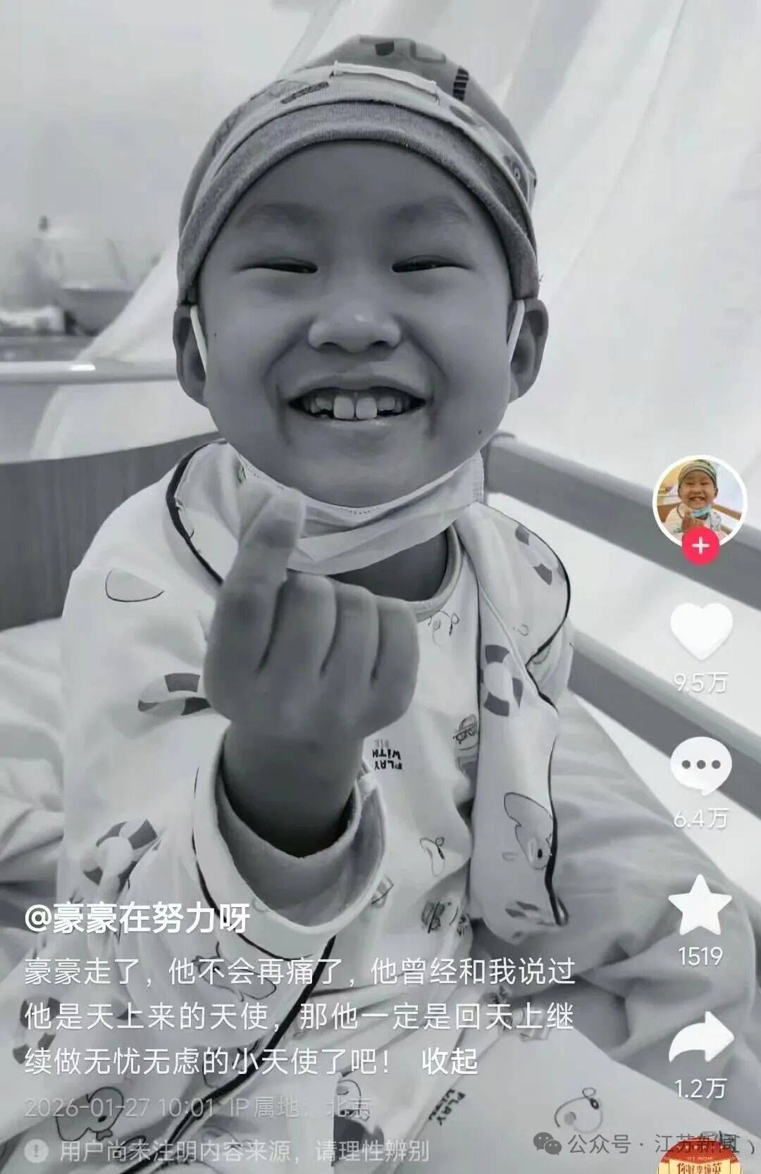 1月27日凌晨,牵动无数网友的10岁白血病男孩豪豪离世,其父亲发文称“豪豪走了,他不会再痛了”。