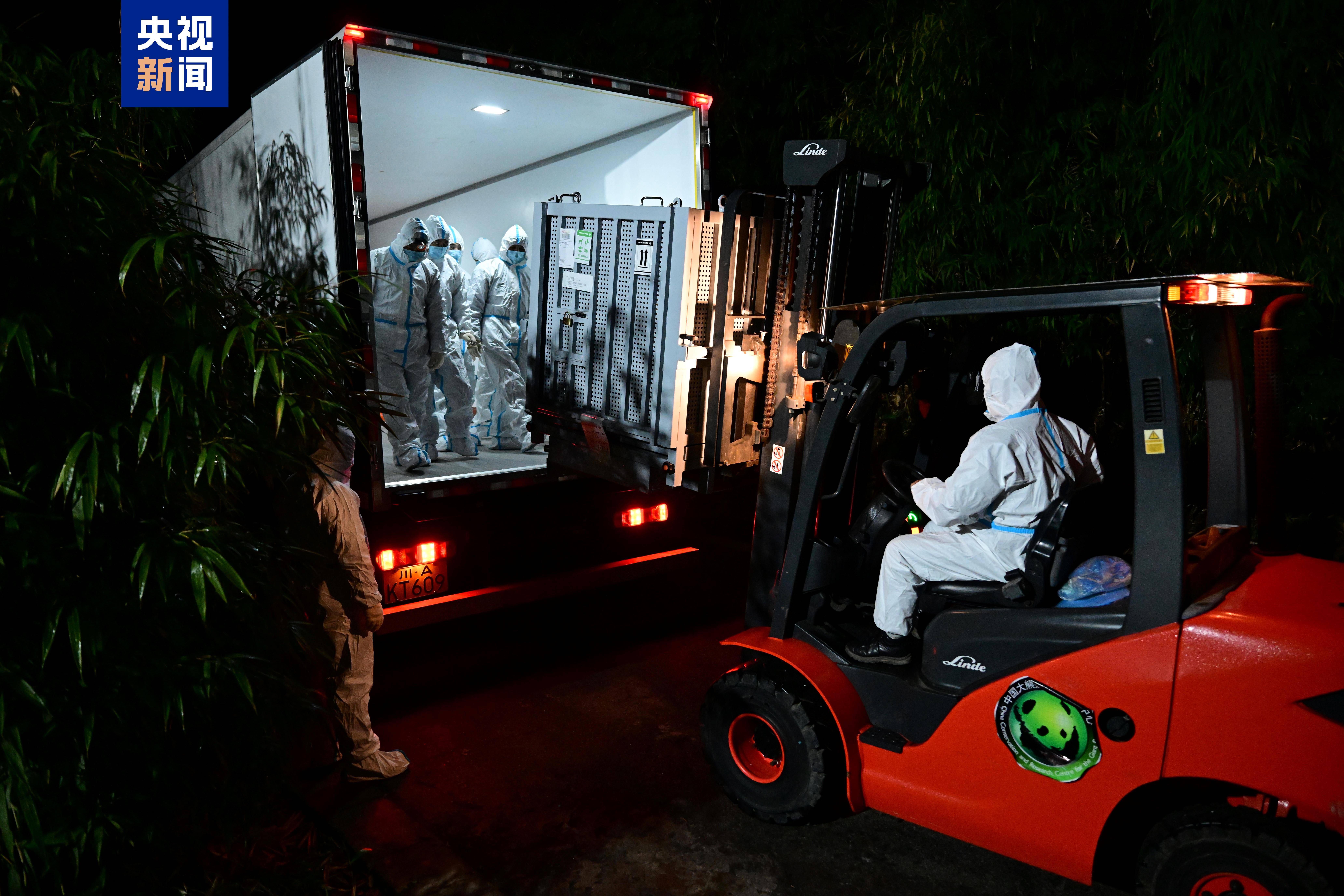 ▽旅日大熊猫“晓晓”“蕾蕾”装运上车