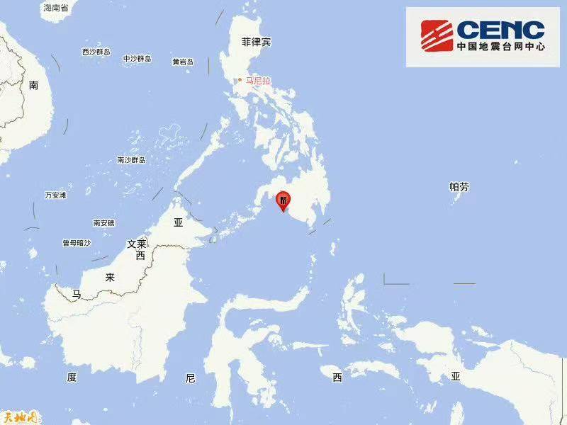 菲律宾棉兰老岛附近海域发生5.9级地震 震源深度20公里