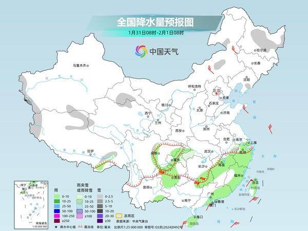 明天,我国大部地区将迎来降水间歇期,仅内蒙古中部、新疆南疆西部山区、西藏西部和东北部、青海南部等地部分地区有小雪或雨夹雪,其中,西藏西部等地部分地区有中到大雪。西藏东南部、贵州中西部、云南东部、福建东南部、广东东南部沿海、广西西北部、海南岛、台湾岛等地部分地区有小雨。