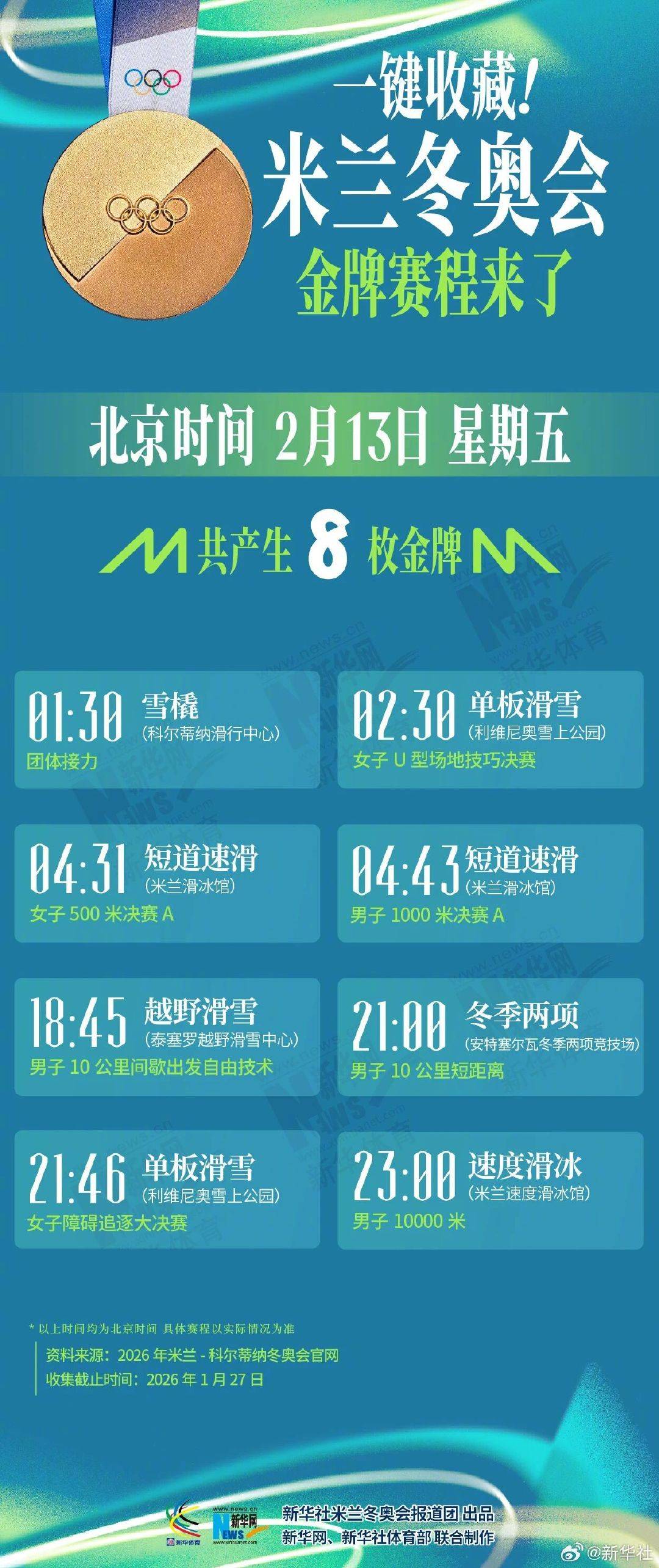 收藏!米兰冬奥北京时间观赛日历来了
