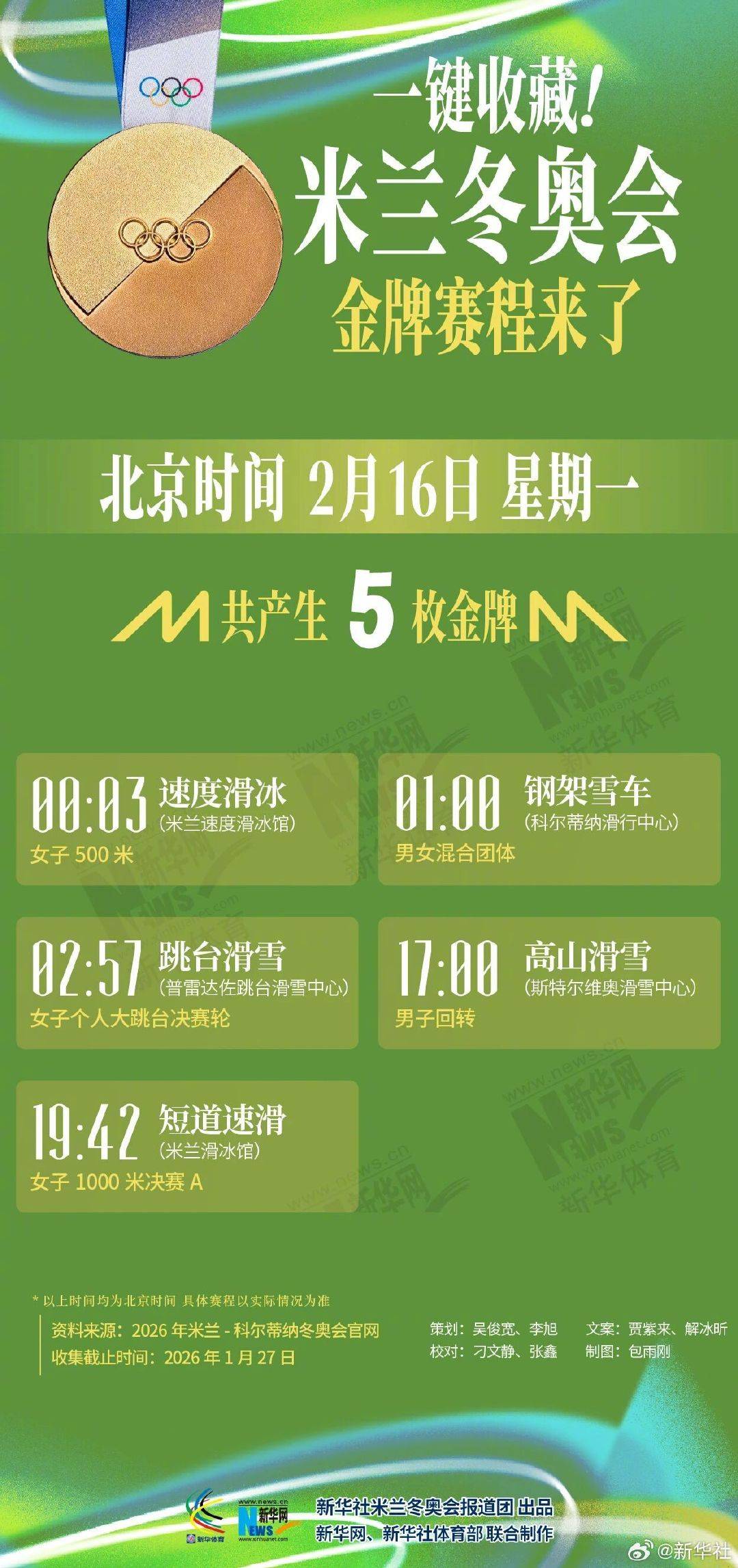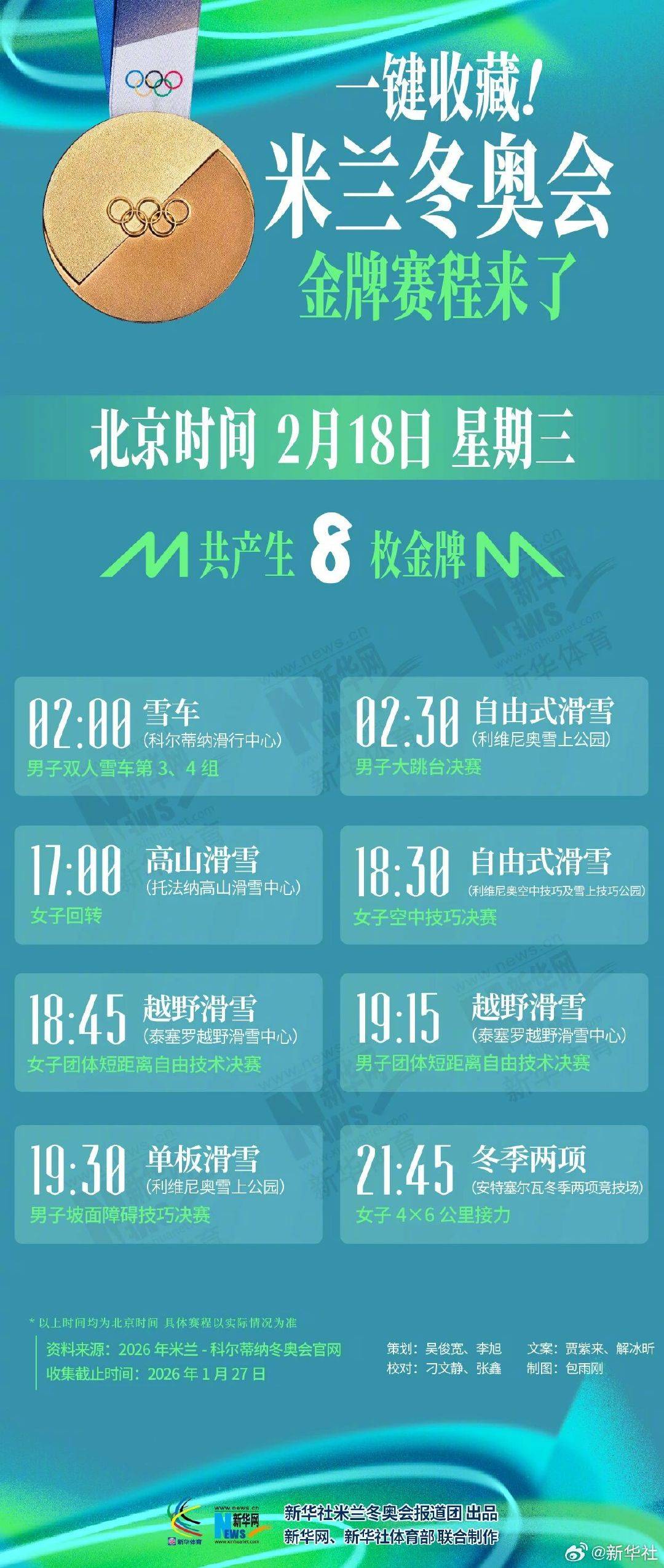 今年过年又能看冬奥了!米兰冬奥会5天后开幕,转存收藏米兰冬奥会金牌赛程↓↓你最想看哪场比赛?