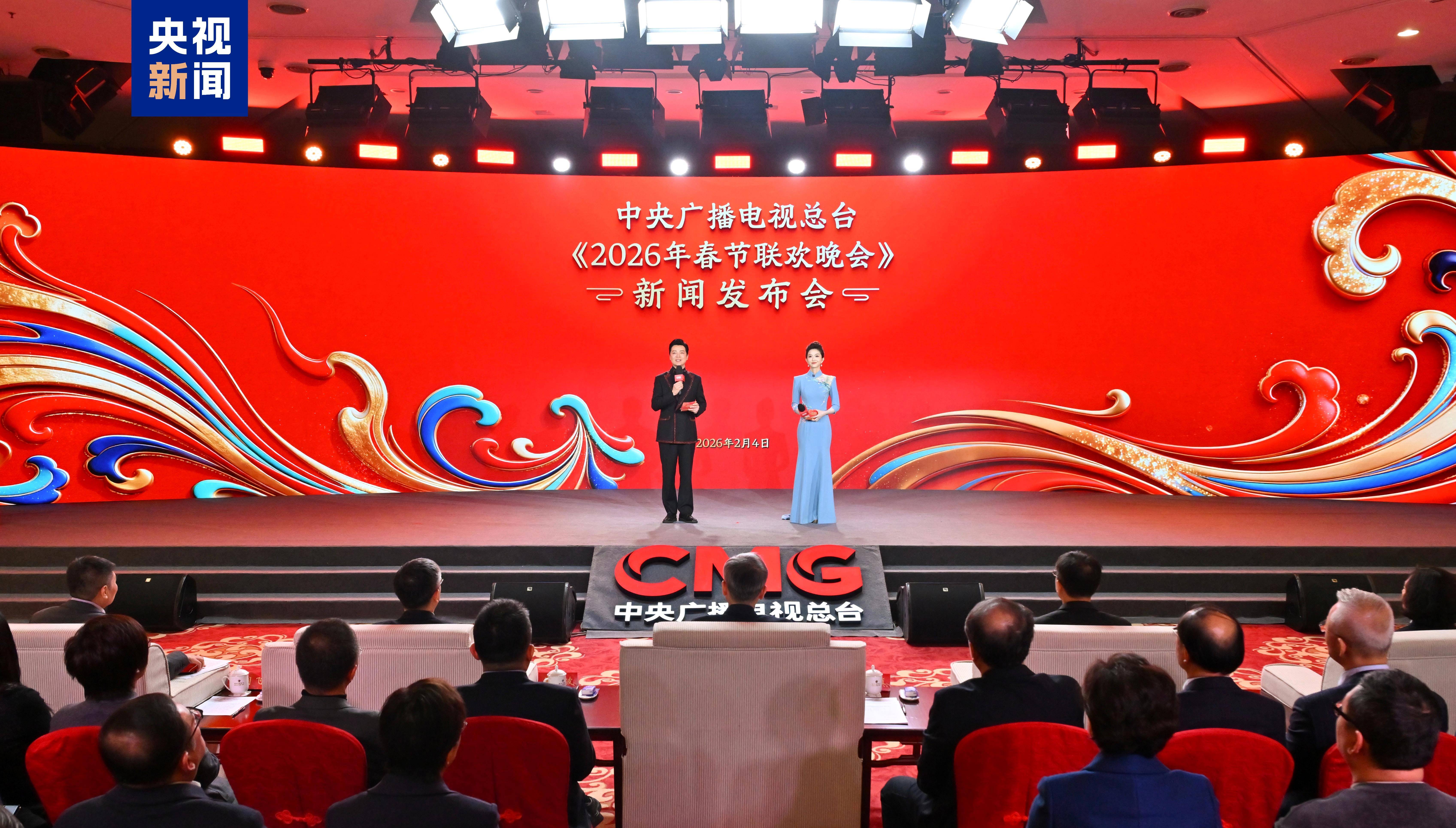 2月4日,中央广播电视总台《2026年春节联欢晚会》新闻发布会在北京举行,介绍节目创作和科技应用亮点,发布主持人阵容和舞美设计。中央广播电视总台副台长王晓真、总台编务会议成员姜文波、中宣部文艺局副局长彭云等出席活动。