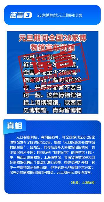 谣言1:社保卡没有有效期、社保卡未到期不能换新卡;谣言2:全国12315平台发布退费公告;谣言3:28家博物馆元旦期间闭馆;谣言4:奶茶等于准毒品……中国互联网联合辟谣平台盘点2026年1月热传谣言,遏制谣言传播空间,净化网络生态,营造风清气正的网络环境。#让网络谣言无处遁形#@全国网络举报@微博辟谣 戳图↓↓