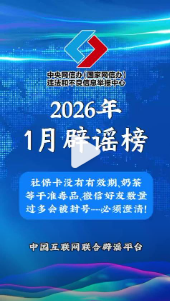为澄清谬误、以正视听,中国互联网联合辟谣平台盘点2026年1月热传谣言,遏制谣言传播空间,净化网络生态,营造风清气正的网络环境。#让网络谣言无处遁形#@全国网络举报@微博辟谣 戳视频看详情↓↓