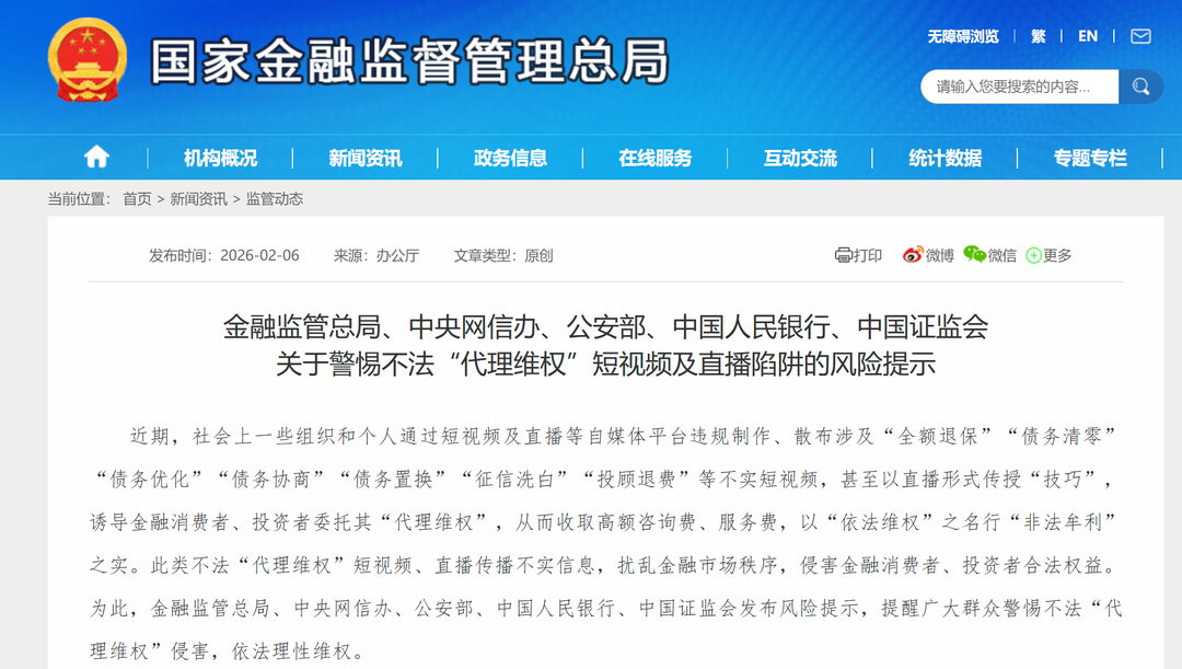 金融监管总局等五部门风险提示:警惕不法“代理维权”短视频及直播陷阱!详情