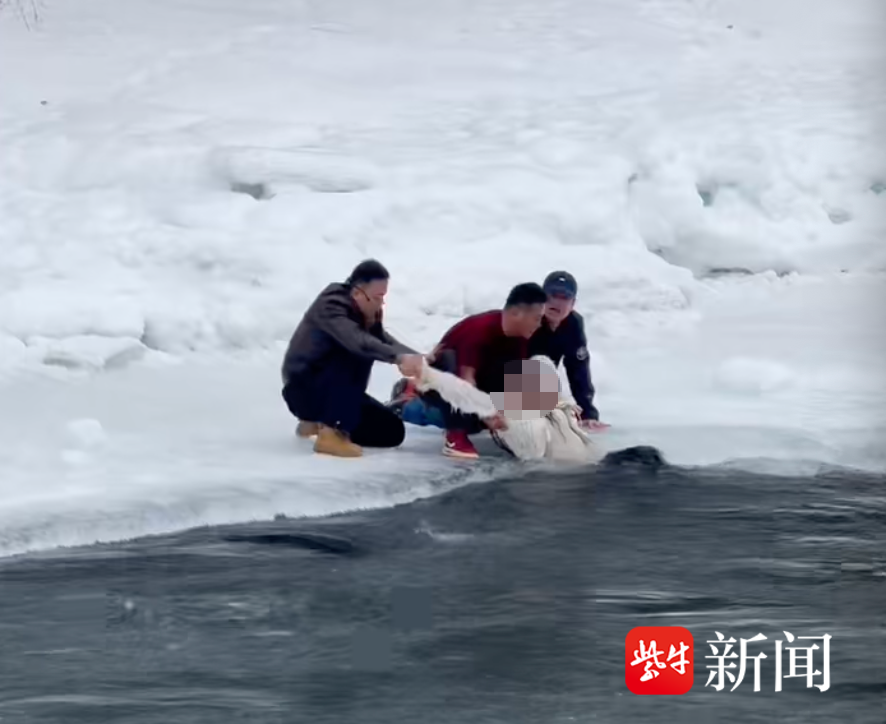 惊险一幕!喀纳斯两游客落入冰河 红衣短袖小哥和众人雪地飞奔救人,警方回应
