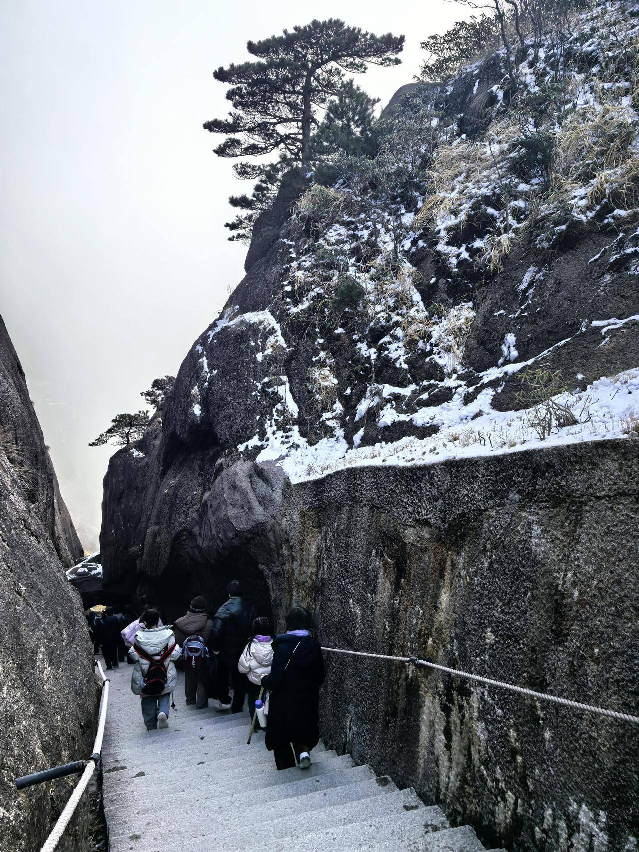他们遇上了黄山今冬的一场雪。