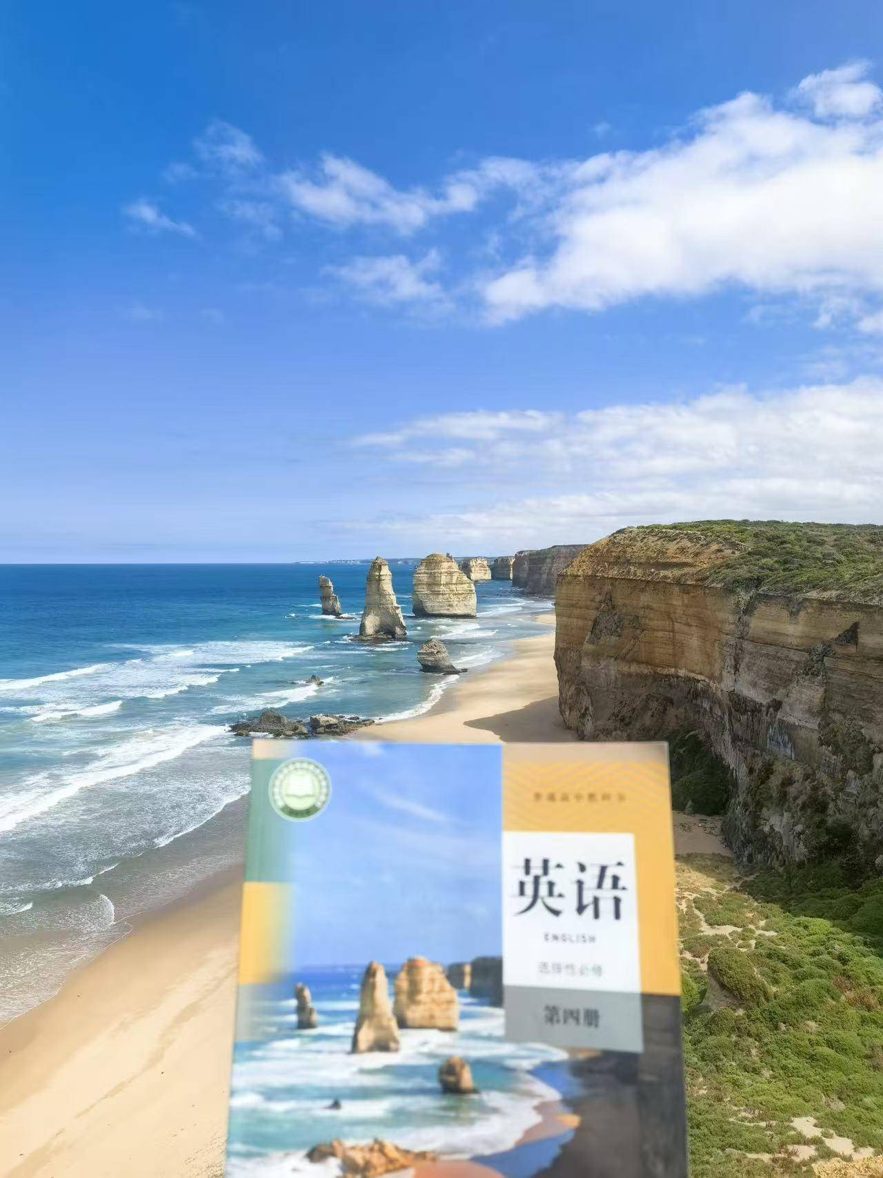 很多高中生对这个地方并不陌生。高中英语必修四的封面上,就是这片海,这排石。