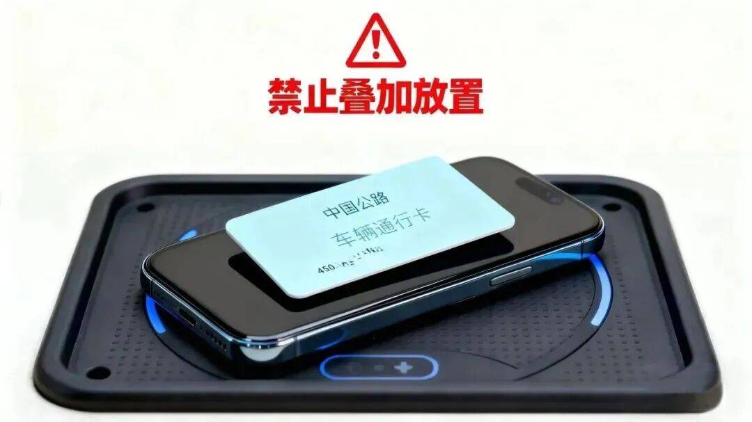 当高速公路复合通行卡(CPC卡)与手机叠放在充电板上充电时,会产生强电磁场,强电磁场会同步作用于CPC卡,同样有爆炸、起火风险。