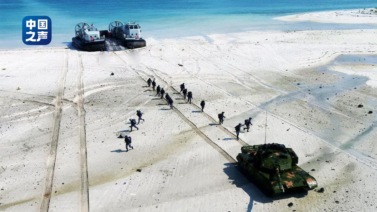 △“野马”登陆艇进行抢滩登陆训练