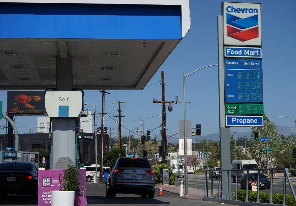 3月9日,车辆在美国加利福尼亚州洛杉矶县的加油站加油。新华社发(曾慧摄)