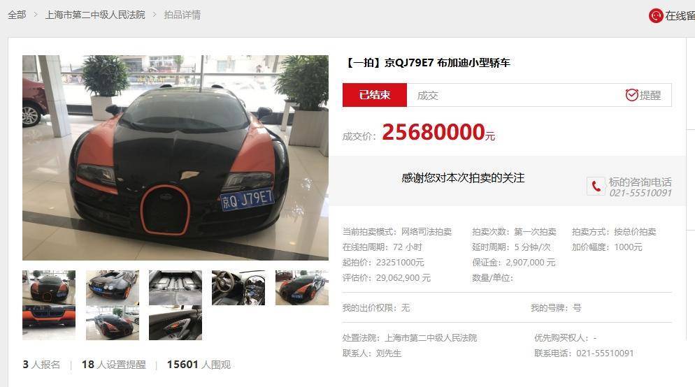 法院拍卖一辆布加迪跑车引热议:600万元起拍,无法上牌,保管费超13万元 详情