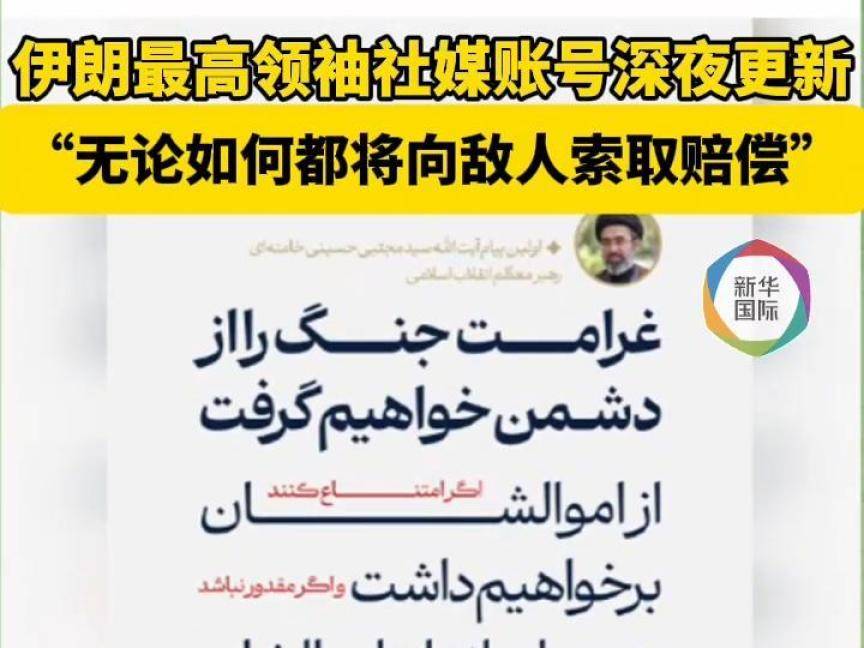 伊朗最高领袖穆杰塔巴·哈梅内伊在社交媒体“电报”的账号15日深夜发布消息,重申伊朗无论如何都“将向敌人索取赔偿”。如果敌人拒绝赔偿,伊朗将没收其相应价值的资产;如果无法没收,伊朗将摧毁其同等价值的资产。(记者:胡若愚)