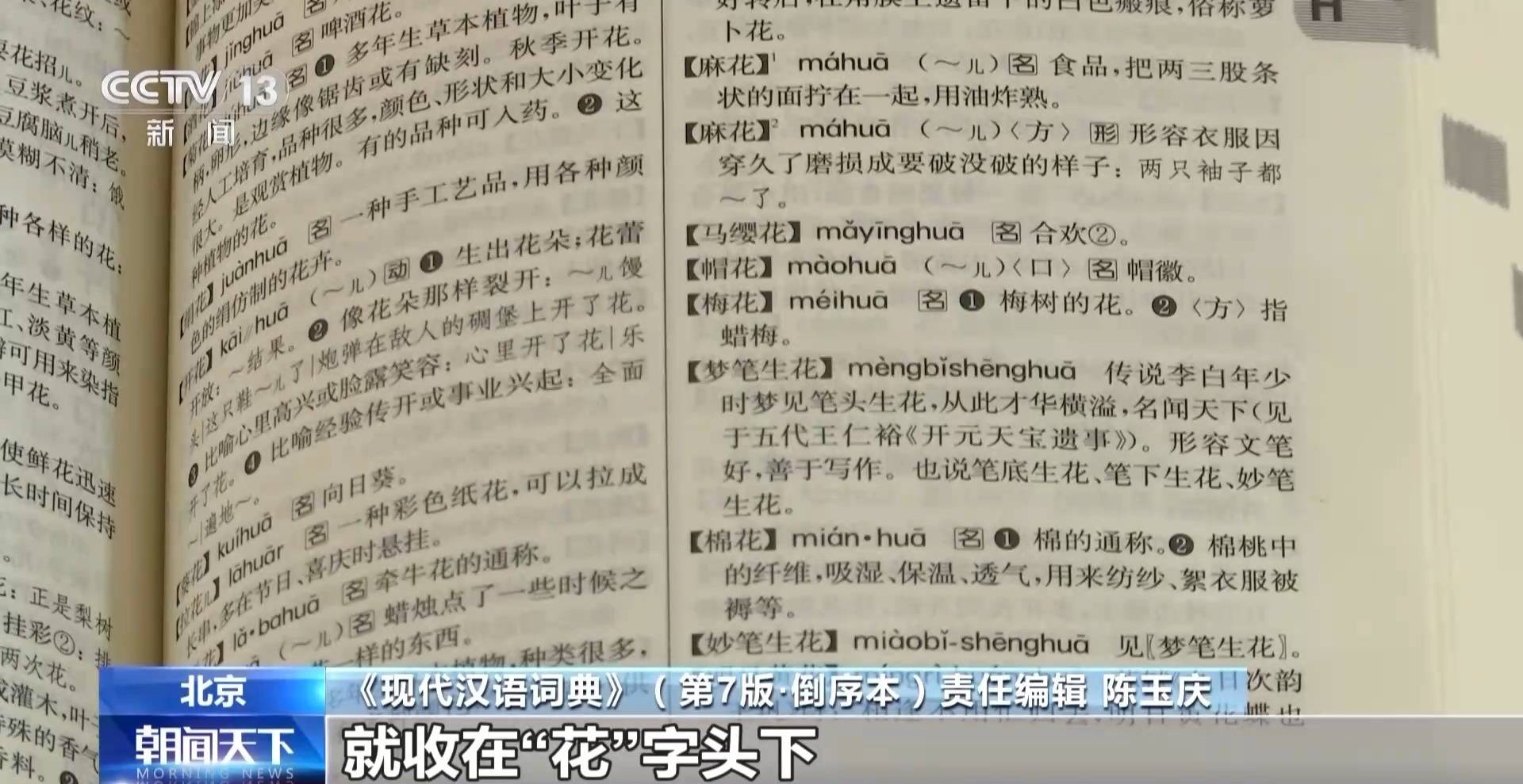 《现代汉语词典》(第7版·倒序本)责任编辑 陈玉庆:词汇相互的关系还可以体现在语义联系,比如说花卉以花为结尾,倒序编排的时候兰花、梅花、菊花就收在“花”字头下。圆溜溜、尖溜溜、灰溜溜这些词,都收在“溜”的字头下。其实是给汉语词汇研究提供了非常好的视角。