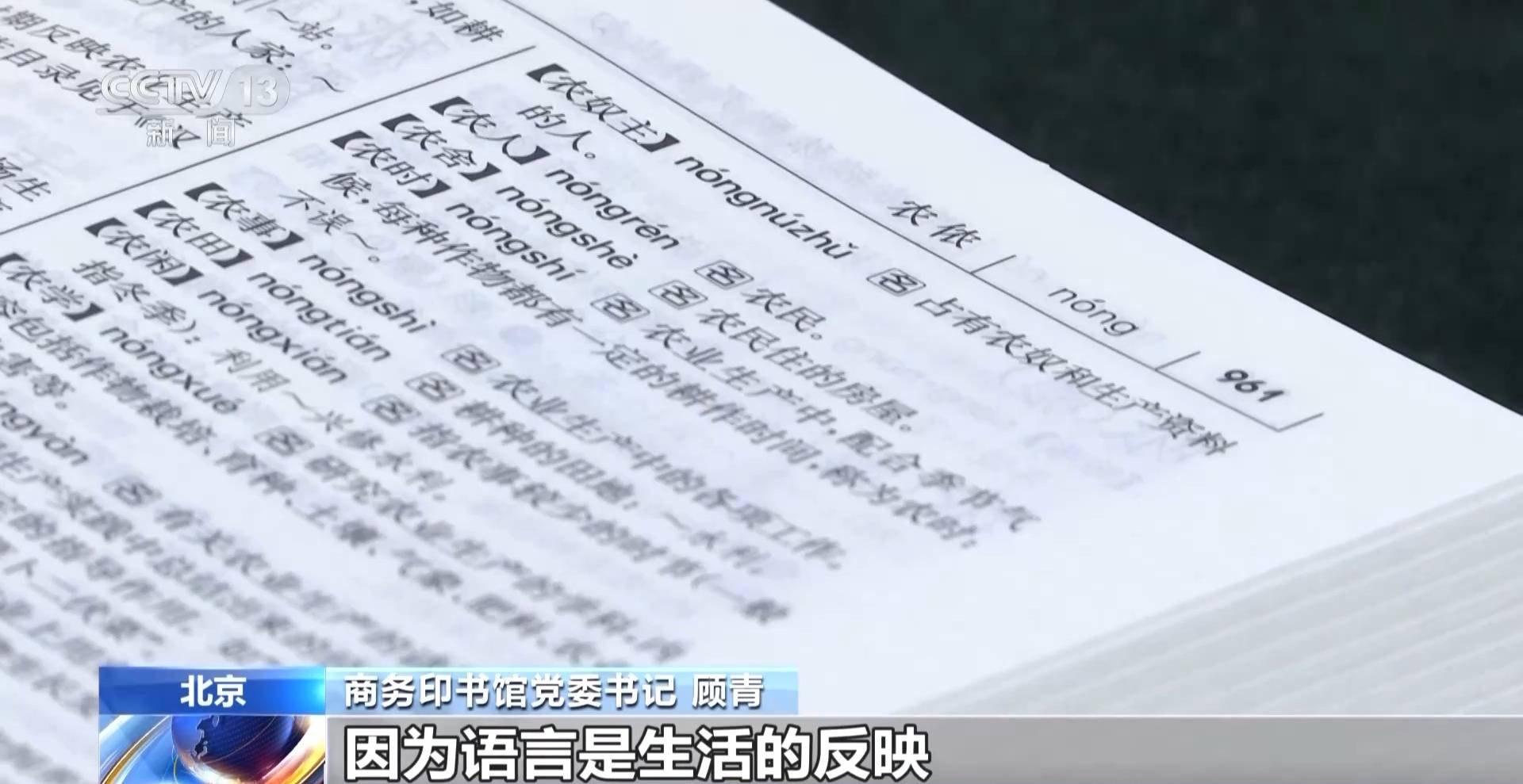 商务印书馆党委书记 顾青:有的是四五年左右,有的七八年甚至有十年左右,我们就做一次修订。因为语言是生活的反映,这个世界上出现很多新的情况,我们就需要用语言来进行表达。