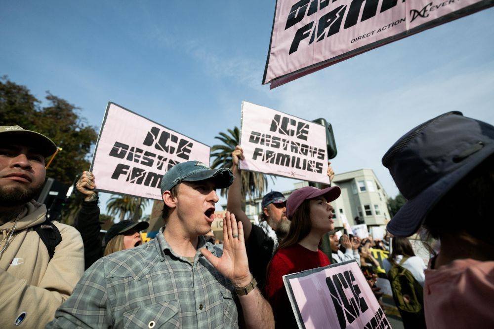 1月30日,人们在美国加利福尼亚州旧金山参加示威游行,抗议特朗普政府暴力移民执法。新华社发(朱子于摄)