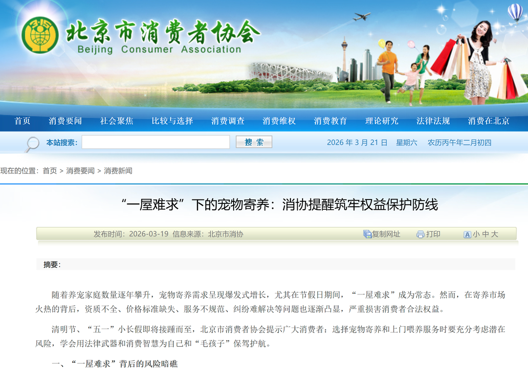 小长假将至,宠物寄养“一屋难求”咋办? 消协提醒风险并呼吁出规范标准 详情
