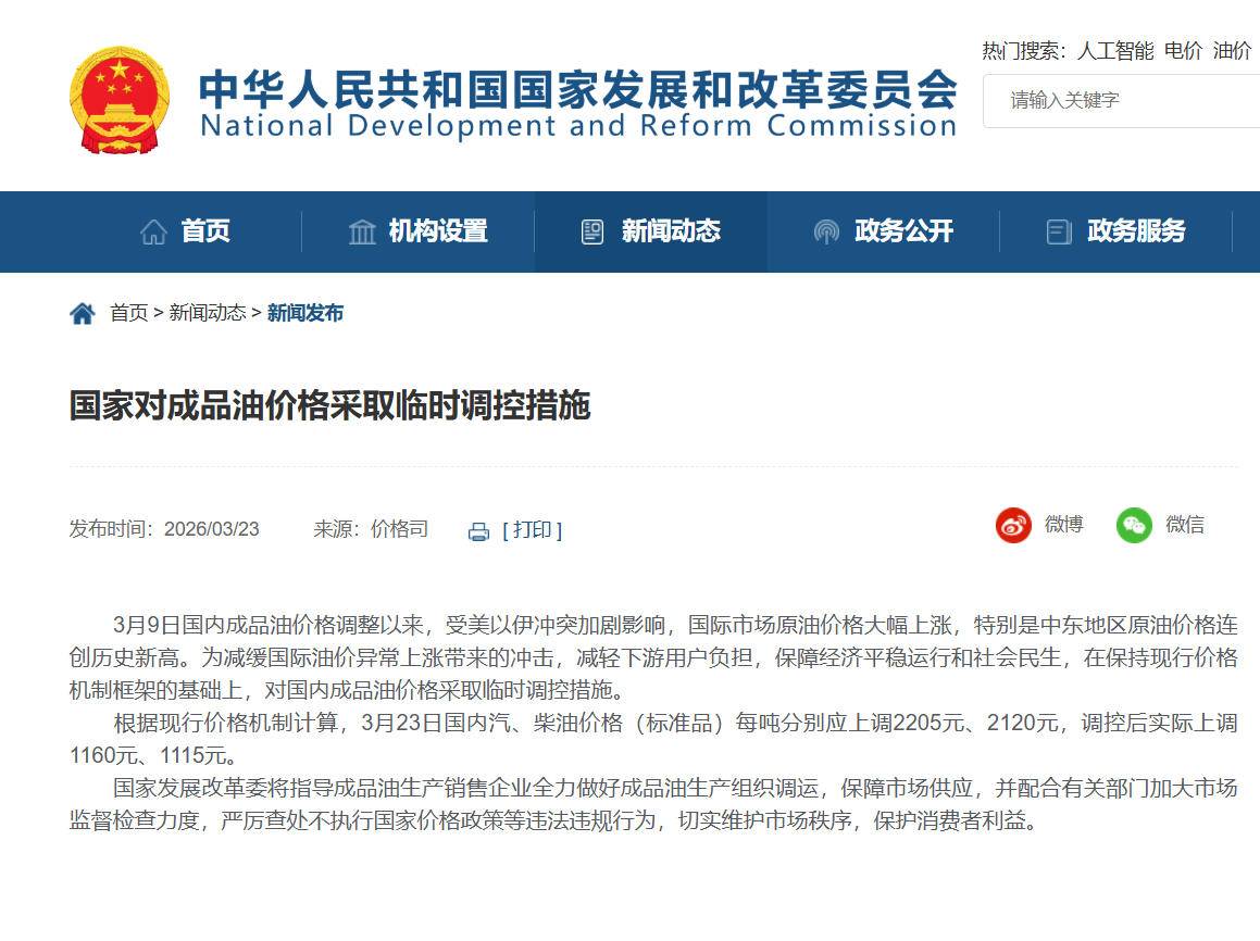 国家发展改革委对国内成品油价格采取临时调控措施 详情