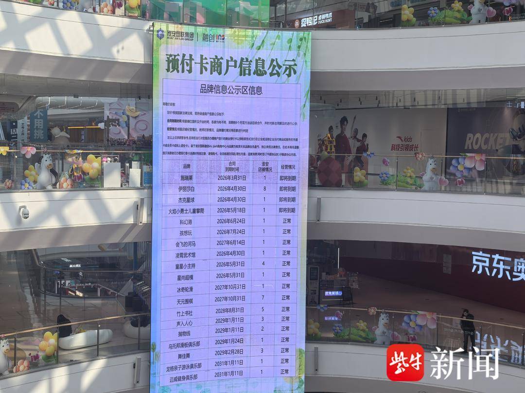 淮安一商场大屏“晒”预付卡商户租期,网友:实用的避坑指南!详情