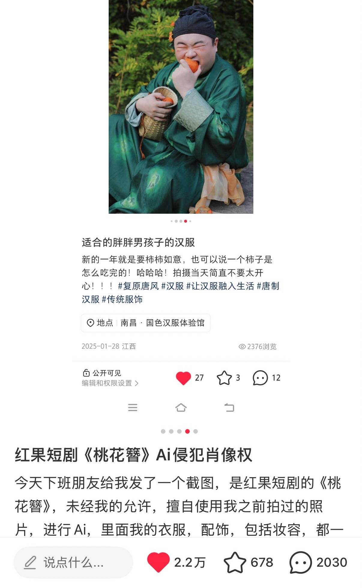 近日,有网友发帖称,自己发布在社交平台的个人汉服写真,被红果短剧平台的AI短剧《桃花簪》擅自用于生成人物形象,还将其丑化为猥琐好色的角色。3月31日,相关话题#AI短剧 偷脸#登上热搜,引发广泛关注。同日,红果短剧平台官方就此事回应称,已收到相关问题的反馈,正在核实处理。