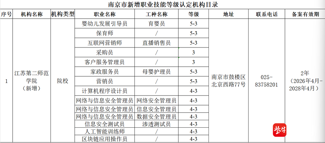 南京公示新增职业技能等级认定机构 涉及直播销售员等多个工种 详情