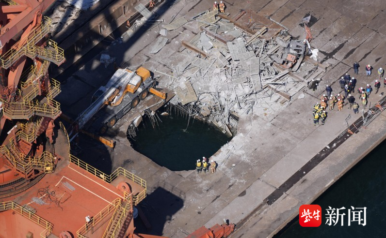 当时有5名男性作业员正在配重上方使用机械进行混凝土破碎拆解作业,他们连同配重和机械一同从高处坠落,部分人员直接摔落地面,另有一人从被砸出的洞口坠入海中。