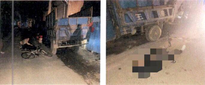 △被撞的三轮汽车(左)和打远光灯的小型轿车(右)