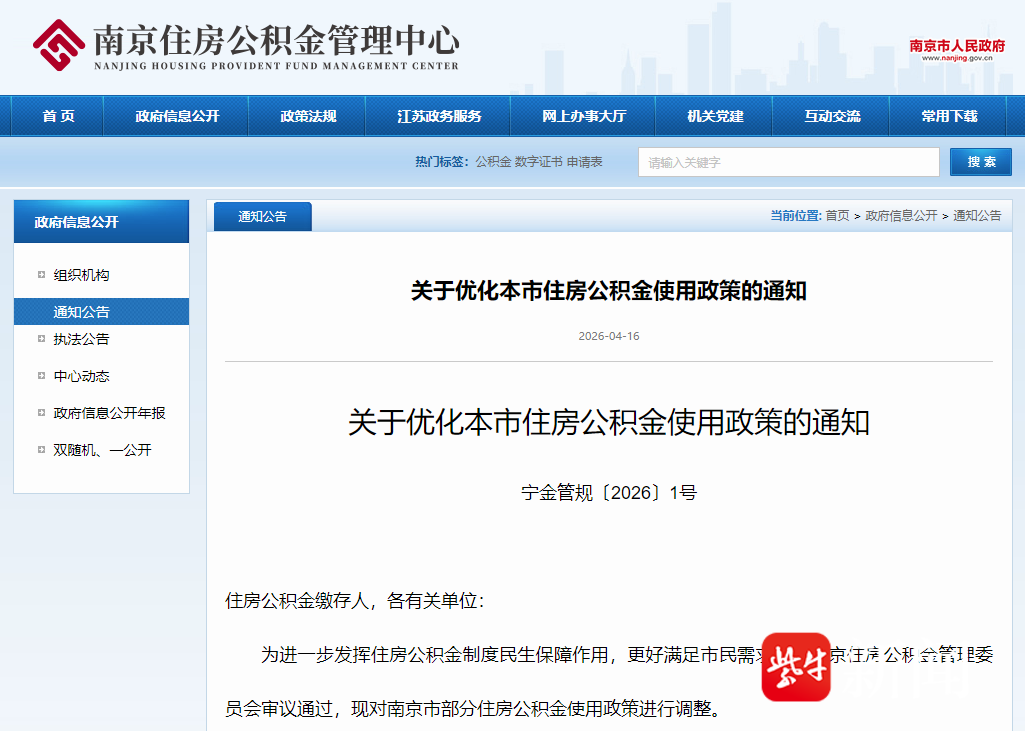 南京出台公积金新政 子女购房可用父母公积金提取还贷,异地贷款扩至安徽全域 详情