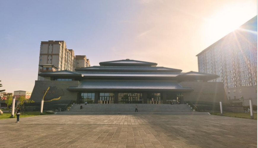 展馆整体设计外观采用中式仿古风格,取型中国古代最高学堂“明堂”形制,以示建筑等级高、历史传承远、文化底蕴深。