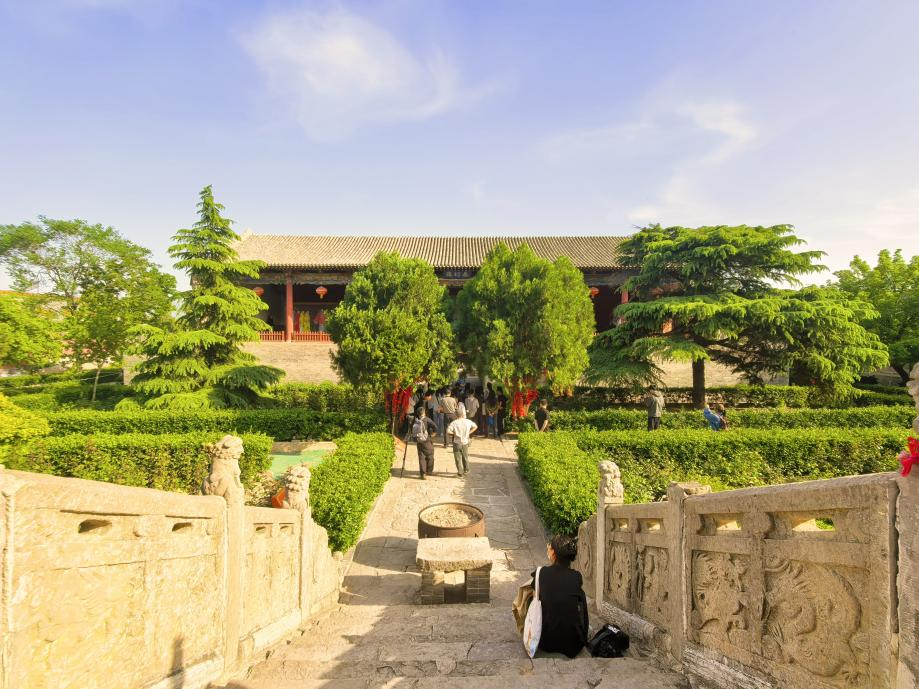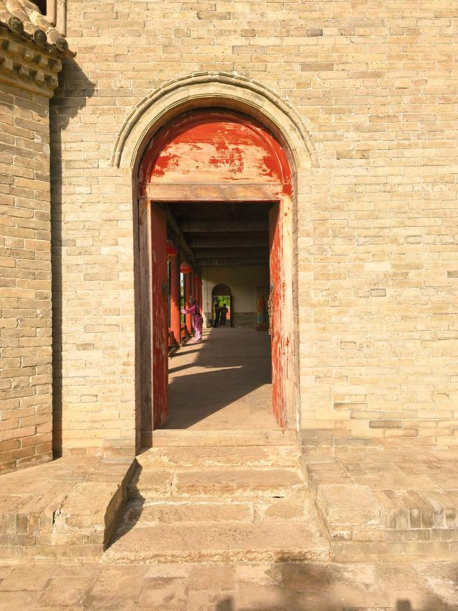 与三大殿相对的就是奏衍楼,始建于元代至正十年(1350年)之前,原为乐楼,以后各代均有增修,清康熙年间更名为“奏衍楼”。“奏”,演奏、呈报;“衍”通“演”。