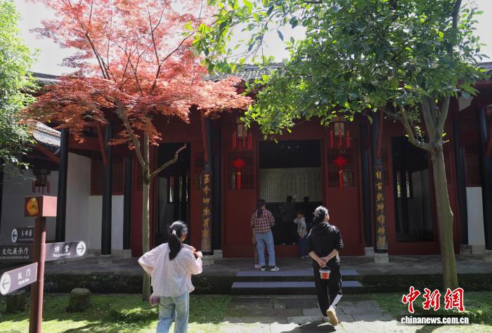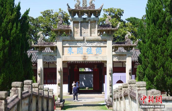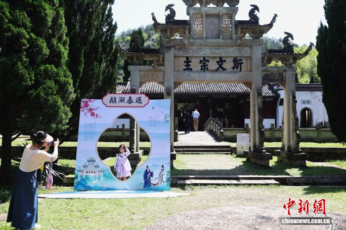 4月19日,世界读书日前夕,江西铅山鹅湖书院内,民众慕名而来,在书香古韵中寻访先哲足迹。始建于南宋的鹅湖书院为古代江西四大书院之一,理学大家朱熹与陆九渊曾在此展开中国哲学史上著名的“鹅湖之会”,八百余年来,书声未绝,文脉绵延至今。图为游客在现场拍照留念。中新社记者 刘占昆 摄
