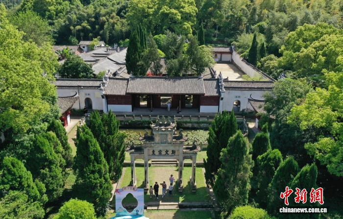 4月19日,世界读书日前夕,江西铅山鹅湖书院内,民众慕名而来,在书香古韵中寻访先哲足迹。始建于南宋的鹅湖书院为古代江西四大书院之一,理学大家朱熹与陆九渊曾在此展开中国哲学史上著名的“鹅湖之会”,八百余年来,书声未绝,文脉绵延至今。(无人机照片)中新社记者 刘占昆 摄