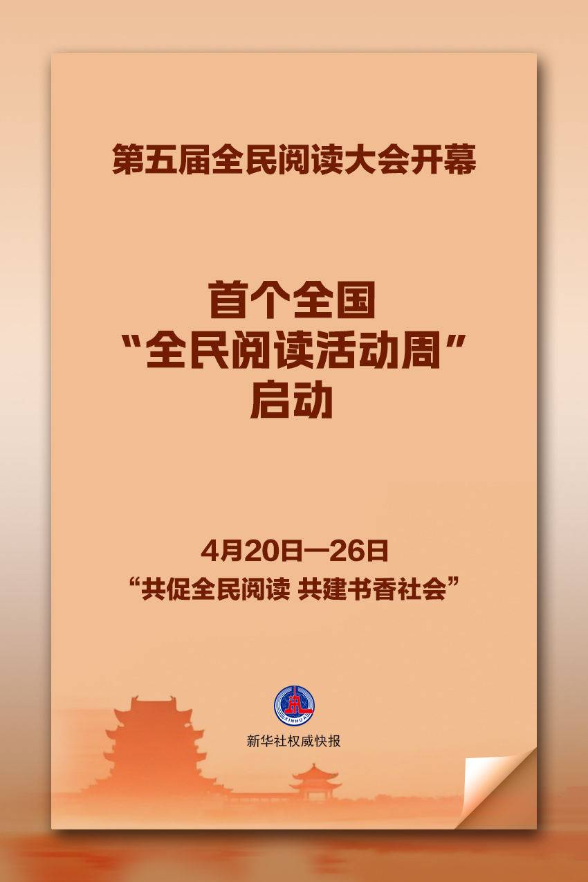 为扩大全民阅读辐射面和影响力,营造爱读书、读好书、善读书的浓厚氛围,扎实推进书香社会建设,第五届全民阅读大会4月20日在江西南昌开幕,首个全国“全民阅读活动周”启动。