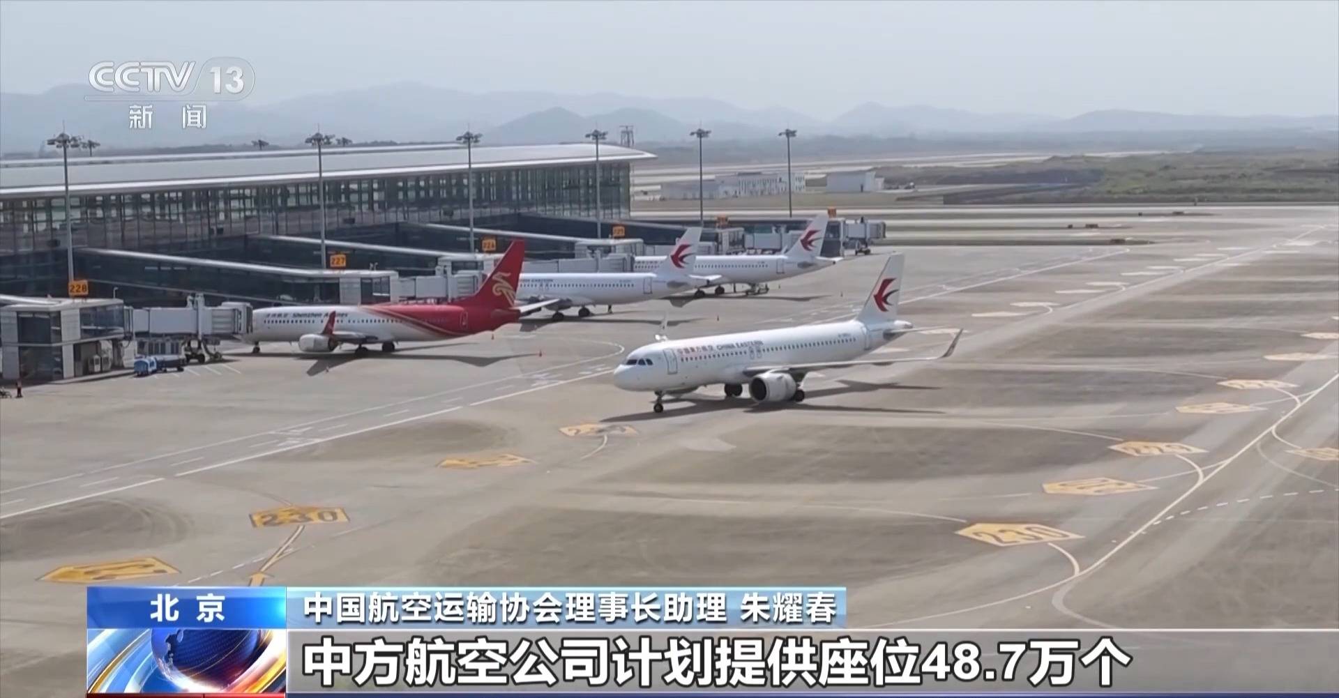 中国航空运输协会理事长助理 朱耀春:大家关注的东南亚地区,“五一”期间,中方航空公司提供座位48.7万个,较去年同期增加4.8万个,目前已销售的机票24.8万张,运力完全满足需求。