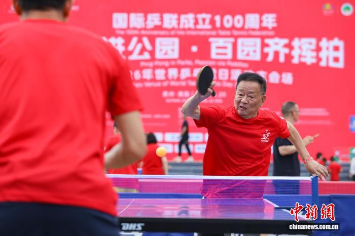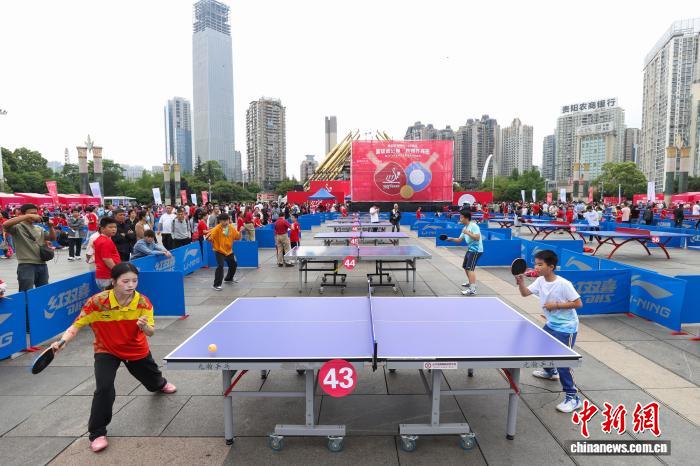 图为乒乓球爱好者在百台千人赛比赛中。中新社记者 瞿宏伦 摄