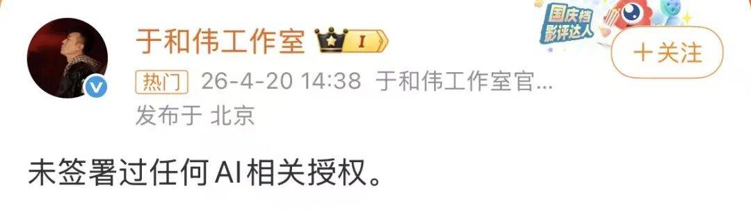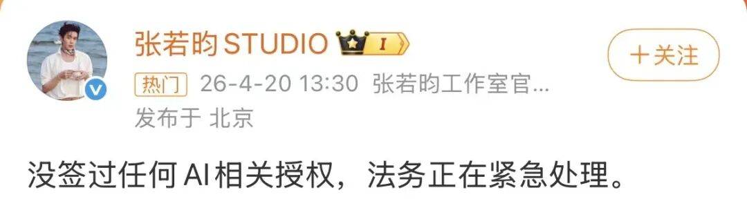 随后,于和伟、张若昀、王楚然、李一桐等艺人团队紧急发布辟谣声明,否认签约AI授权。