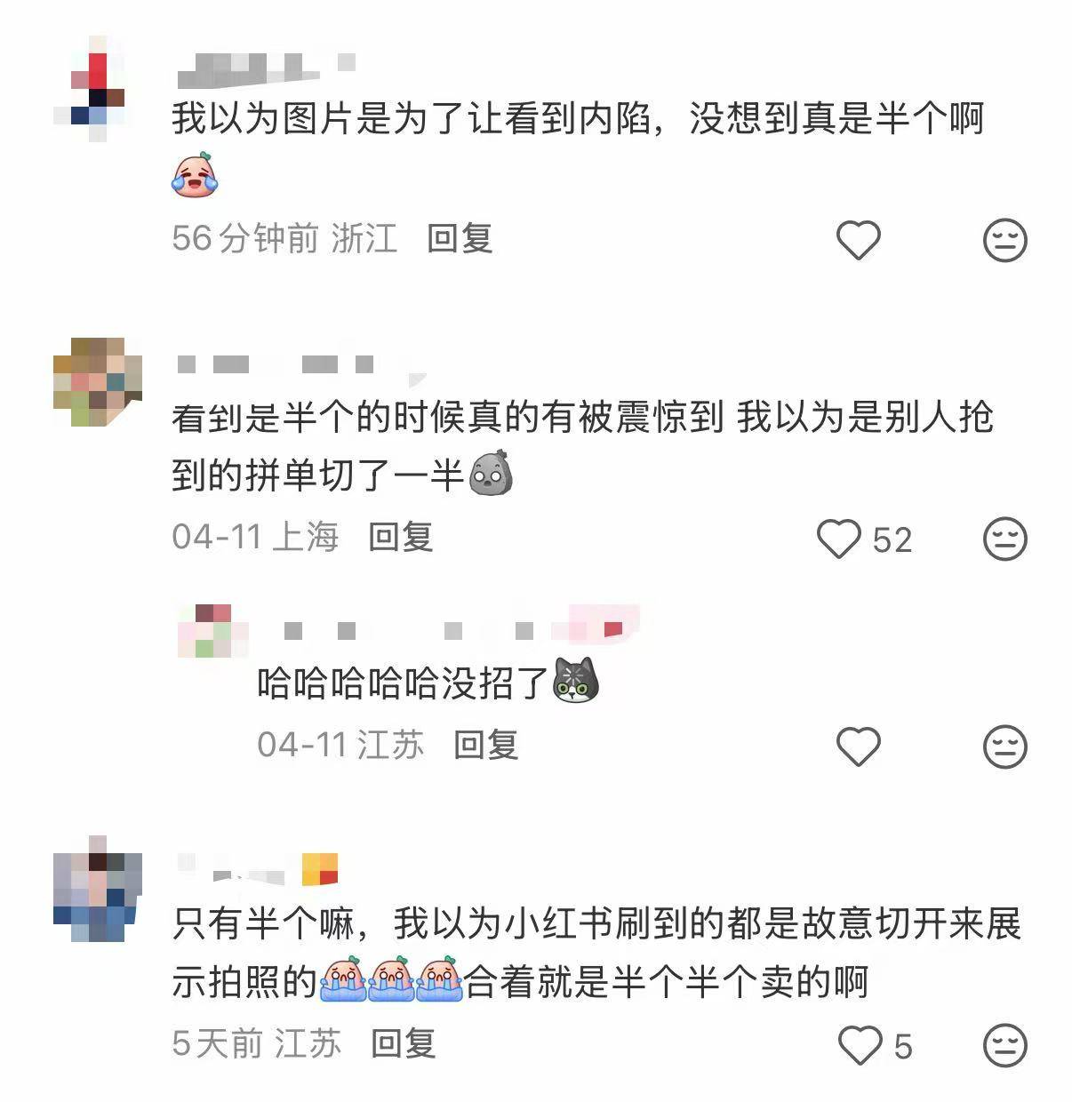 记者在消费者发布的吐槽帖评论区看到,不少网友与徐女士有同样感受,有网友留言:“原来不止我一个人‘上当’!”“第一次见到按半个卖的泡芙。”也有网友表示,产品详情页中已标注四种口味各半个,可能是不少消费者未注意到这一说明。