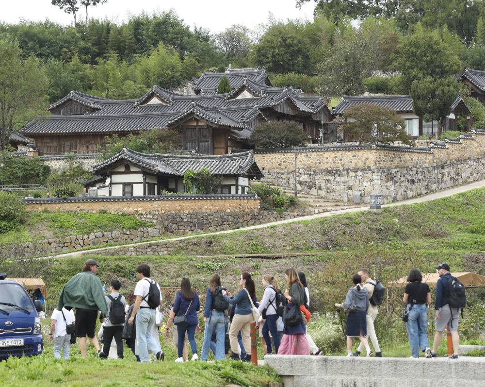 2025年10月17日,游客在韩国庆州的良洞古村参观。新华社记者姚琪琳摄