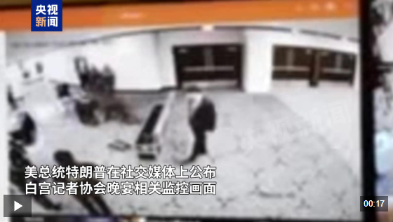 特朗普在发布会前于社交媒体上率先发布了一张照片,照片显示一名男子躺在华盛顿希尔顿酒店的地上。该男子似乎是嫌疑人。特朗普还发布了一段监控录像,录像显示一名男子跑过华盛顿希尔顿酒店的安检点。视频中,安检人员拔枪并似乎开始射击。特朗普在发布会上表示,他公布监控录像是为了“提高透明度”,并展示安保人员对枪手的反应速度。